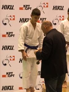 Chez les Espoirs -50kg, Florent Baudat dispute ses premiers championnats suisses. Après deux combats remportés par ippon, il est défait en finale par le vainqueur 2013. Sur le podium, la médaille d’argent est remise à Florent par le président de la Fédération Suisse de Judo.