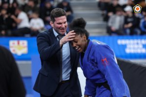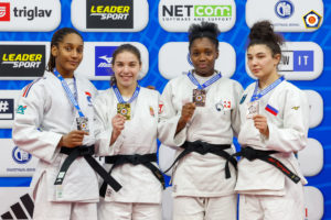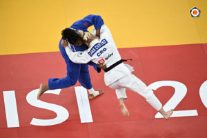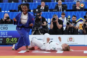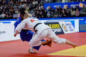 Dans cet ultime combat, April se retrouve face à la n° 1 du classement mondial, la Croate Cvjetko. Un yuko de chaque côté à la fin du temps réglementaire, l’affrontement se poursuit durant le « golden score ». Et c’est par ippon qu’April l’emporte et monte pour la première fois de sa jeune carrière sur le podium européen des Elites.