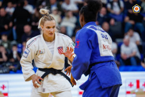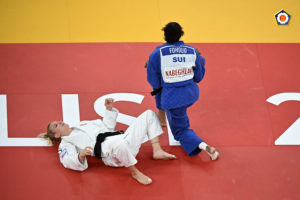 Au 1er tour, elle l’emporte sur l’Allemande Pohl par yuko et au 2ème tour, sur le même score, face à la Portugaise Timo, de 15 ans son ainée. C’est encore sur la même valeur qu’elle gagne son quart de finale face à la Suédoise Eriksson.